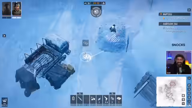 00:24:47Der Streamer navigiert seine Charaktere durch das erste Tutorial-Level, was sich als anspruchsvoll erweist. Er lernt Mechaniken wie das Platzieren von Ablenkungsgeräuschen, das Nutzen von Verstecken und den Umgang mit dem Sichtkegel der Gegner. Währenddessen treten wiederholt technische Probleme auf, wie eine leise Audioausgabe und das versehentliche Löschen des Spielstandes, was ihn frustriert und ihm zu ungeduldig erscheinen lässt.