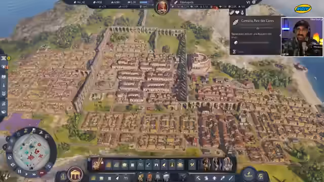 00:13:11Nach einer kurzen Pause konzentriert sich der Streamer auf den weiteren Ausbau seiner Stadt Edolopolis in Latium. Der Fokus liegt auf dem Bau und der Verteilung von Aquädukten, um fließendes Wasser in die Stadt zu bringen. Er beschreibt, wie das Spiel vertieft und man die Zeit vergisst. Der Streamer betont, wie game-changing fließendes Wasser für Gesundheit, Brandsicherheit und die allgemeine Lebensqualität der Bewohner ist und zeigt den Fortschritt der ansprechenden, grafisch wunderschönen Wasserversorgung.