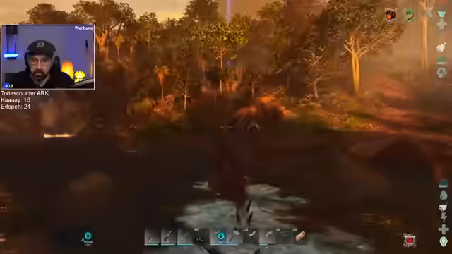 03:39:06Nachdem er von einem Alpha-Karnosaurier in seiner Basis angegriffen und getötet wird, erkennt der Streamer, dass der aktuelle Standort nicht mehr sicher ist. Er beschließt, die Basis zu verlegen. Sein Ziel ist es, schnellstmöglich einen Flugdino zu zähmen, um von oben auf seine Feinde schießen und besser ausweichen zu können.