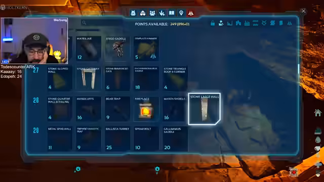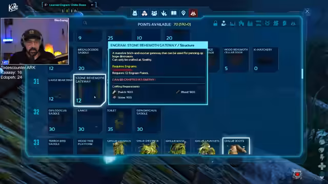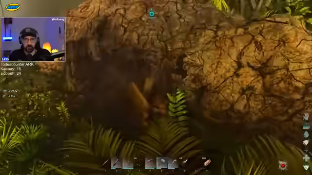 00:20:11Nach technischen Schwierigkeiten beim Server-Connect ist der Streamer zurück im Spiel und sucht nach Kevin. Die Base befindet sich in einer gefährlichen Lage am Vulkan. Die Priorität ist das Zähmen eines Stegosaurus, der bereits Level 204 erreicht und als Tank mit hoher Lebensenergie und Schaden aufgebaut wird. Während des Zähmprozesses, der fast eine Stunde dauert, wird die Gefahr durch nächtliche Raubtiere wie Raptoren thematisiert, weshalb der Stego auf einem abgeschirmten Vorplatz bewacht wird.