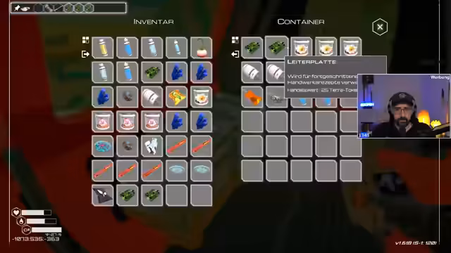 05:13:14Nach dem Ark-Segment wechselt der Streamer zu Planet Crafter und ist an einem sehr spannenden Punkt angekommen. Der Fokus liegt auf der Freischaltung der Automatisierung, insbesondere der Drohnen und des Baus einer neuen Base. Es wurde bereits herausgefunden, wo welche Ressourcen mit Deep Drills abgebaut werden können, was die Grundlage für eine sinnvollere und skalierbare Produktion bilden soll. Das Spiel wird auf dem Hardcore-Toxicity-Planet gespielt, bei dem ein Tod den Verlust aller Fortschritte bedeutet.