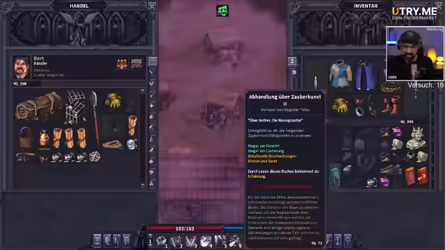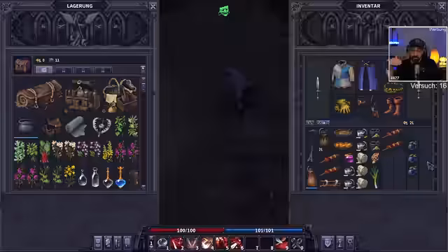 01:43:00Der Streamer beginnt eine Quest namens "Raster Pilger" und trifft auf gefährliche Gegner,其中包括具有"Blutung"和"Lebensentzug"技能的吸血鬼. Er verliert durch den Schaden einen Großteil seiner Lebenspunkte und erkennt, dass er seine Taktik anpassen muss. Durch geschicktes Mana-Draining gelingt es ihm, den Gegner zu schwächen und ihn schließlich zu besiegen.