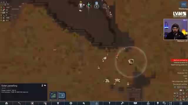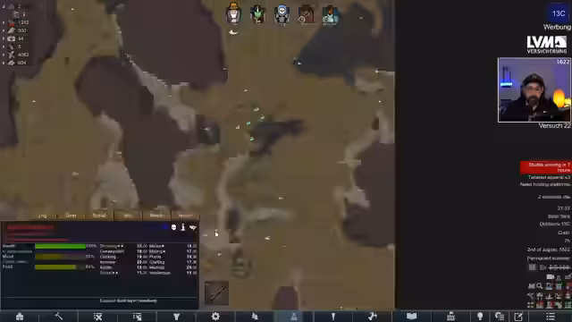 05:40:57Der Streamer diskutiert das Spiel 'Dandelion Void', das wie 'Project Zomboid in Space' beschrieben wird und von Mod-Machern von 'Project Zomboid' entwickelt wurde. Er ist begeistert von der Idee eines Survival-Spiels auf einer Arche im Weltraum und freut sich auf dessen Veröffentlichung. Im Spiel selbst kämpft er mit Stromproblemen und dem Mangel an Platten für den Bau weiterer Solarpaneele. Er plant, Shield-Gürtel für seine Kolonisten herzustellen, um zukünftige Konfrontationen mit Drohnen in Komplexen sicherer zu gestalten. Die Kolonie muss bald zum 'Ancient Stockpile' fliegen, um die benötigten Ressourcen zu sammeln. Die aktuelle Spielzeit beträgt 13 Stunden, und die Kolonie ist seit über zwei Jahren auf dem Planeten. Es gab seit dem letzten großen Raid keine weiteren Angriffe, was auf eine relative Ruhephase hindeutet.