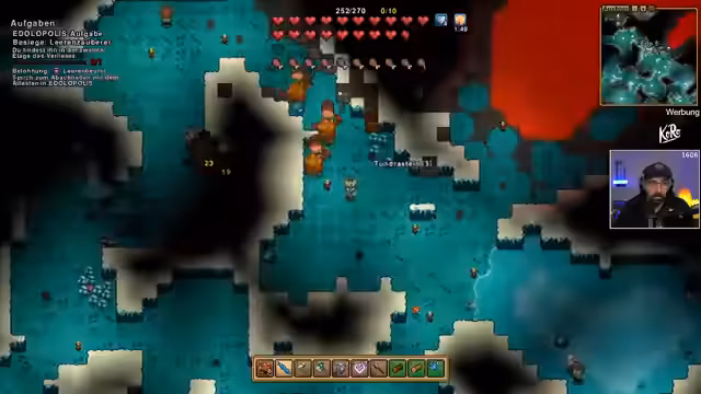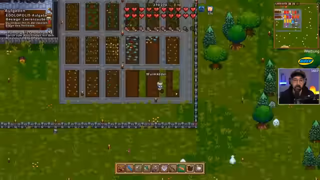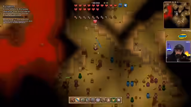 02:42:08Nach dem erfolgreichen Besiegen des dritten Bosses, des Leeren Zauberers, erhält der Streamer wertvolle Belohnungen wie einen Leerenbeutel, der viel Platz bietet, und einen Leeren Anhänger, der die maximale Anzahl an Accessoires dauerhaft auf fünf erhöht. Er ist besonders erfreut über die Möglichkeit, ein weiteres Accessoire kostenlos nutzen zu können. Obwohl einige der erhaltenen Waffen wie die Leeren Rakete und die Spinnenklaue schlechte Werte aufweisen, besteht die Möglichkeit, sie neu zu verzaubern. Der Streamer freut sich über den Fortschritt und die Leistung seiner „privaten Armee“ und plant, als Nächstes den Boss in der Ebenenhöhle zu bekämpfen. Er stellt fest, dass er in einigen Gebieten wie der Ebenenhöhle und der Tundra noch Aufgaben zu erledigen hat, darunter das Besiegen eines Hasen und eines weiteren Bosses in der Wüstenhöhle. Die Siedlung wurde optimiert, die Siedler erledigen ihre Aufgaben effizient, kochen, halten den Kühlschrank gefüllt und die Felder sind bestellt. Die Ausrüstung der Siedler wurde verbessert, und der Streamer ist bereit, im nächsten Stream weitere Bosse zu bezwingen, um den Fortschritt voranzutreiben.