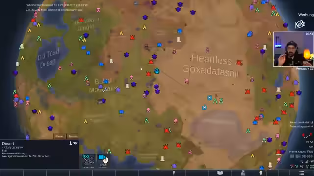08:23:01Eine unerwartet große Anzahl von 15 starken "Voids", darunter "Corpse Destroyer" und "I am a weapon", greift an. Angesichts dieser Übermacht wird die Flucht als einzige Option betrachtet. Der Streamer plant, in einen Sumpf oder Boreal Forest zu fliegen, um sich besser einbauen zu können. Die Schwierigkeitsskalierung der "Void"-Mod wird kritisiert, da die Raids trotz eines Koloniewerts von 90.000 schlimmer sind als zuvor bei 800.000. Die Aktivierung des "Drop-Pod-Jamming-Protokolls" und die Beschwörung von Max werden als kurzfristige Maßnahmen ergriffen, um die Bedrohung einzudämmen. Die Notwendigkeit, das Raumschiff zu drehen, um an einem besseren Ort zu landen, wird als unumgänglich, aber verwirrend empfunden.