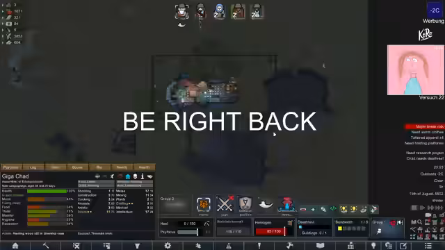 05:27:05Der Streamer zeigt sein Mousepad, das ein detailliertes RimWorld-Motiv zeigt und seine tiefe Verbundenheit zum Spiel unterstreicht. Er liebt die vielen kleinen Details und die Möglichkeit, immer wieder Neues zu entdecken, was für ihn ein 'Feels Good'-Erlebnis darstellt. Er kündigt an, dass der Stream mit RimWorld Void fortgesetzt wird, einer besonders herausfordernden Version des Spiels. Es wird auf die dramatischen Ereignisse des Vortages zurückgeblickt, bei denen ein Kolonist namens Maker starb, aber erfolgreich wiederbelebt werden konnte. Diese Wiederbelebung kostete Kay einen Finger und führte bei Maker zu einer Wiederbelebungspsychose, die jedoch mit Nerotonin 8b geheilt wurde. Der Streamer betont die Wichtigkeit, achtsam mit den verbleibenden vier Dosen dieses wertvollen Medikaments umzugehen.