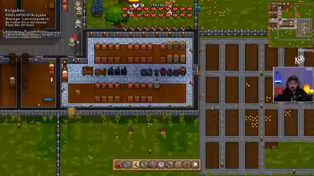 00:14:23Nachdem die ersten beiden Bosse besiegt wurden, konzentriert sich der Streamer auf die Organisation der Siedlung in Necesse. Ein neuer Siedler namens Frankie wird begrüßt und erhält ein Bett zugewiesen. Das Hauptziel ist der Ausbau des Lagerhauses und die Stärkung der Siedler. Es wird geplant, alle Felder zu bepflanzen, Kühlschränke zu organisieren und alle Gegenstände vernünftig zuzuordnen. Der Arbeitsbereich und das Lager sollen optimiert werden, um eine klare Struktur zu schaffen, wo sich welche Gegenstände befinden. Dies beinhaltet das Sammeln und Einlagern von Schmelzen, Ambossen, Werkbänken, Kochutensilien und einer Käsepresse, um eine effiziente Produktion und Lagerung zu gewährleisten.