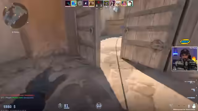 04:55:23Das CS2-Match zwischen den neu formierten Teams beginnt. Die Männer-Team startet als Terroristen mit dem Plan, Bomben-Site 'B' anzugreifen. Es kommt zu taktischen Angriffen mit 'Smoke'-Granaten, um die Verteidiger zu verwirren. Das Team arbeitet gut zusammen, kommuniziert und sichert sich in der ersten Runde den Sieg, indem sie die Bombe erfolgreich platziert und die Gegner eliminiert.