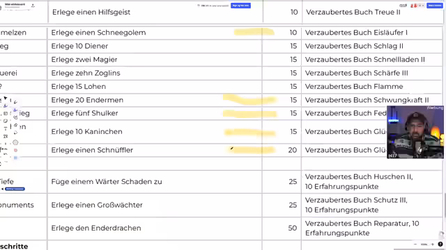 01:00:25Das Team geht die vielfältigen Minecraft-Missionen für das DLDS-Event durch. Dabei werden Aufgaben wie Roh-Eisenproduktion, Nahrungsmittelherstellung und Mob-Ausrottung analysiert. Sie entscheiden, welche Herausforderungen machbar sind und welche als zu risikoreich oder aufwendig für den Anfang verworfen werden. Der Fokus liegt auf einer klaren Strategie für den Start, um wichtige Ressourcen wie Eisen zu beschaffen und sich grundlegend auszurüsten.