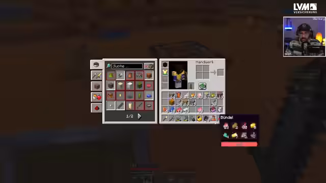 02:40:59Während des Streams werden offizielle Twitch-Drops für Minecraft erwähnt und die Zuschauer aufgefordert, in ihren Account-Einstellungen nachzuschauen, welche Drops sie farmen können. Ein zentrales Problem ist der volle Inventarplatz, der den Streamer zwingt, Ressourcen wie Wolle und Bambus wegzuwerfen. Die Entdeckung des Rucksack-Rezepts ist daher ein Wendepunkt, um die Lagerkapazität zu erweitern.
