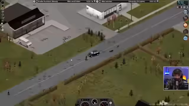 01:43:40Um eine Kuh und einen passenden Anhänger zu finden, bricht der Streamer zu einer Erkundungsfahrt in eine nahegelegene Stadt auf. Das Fahrzeug ist jedoch in einem prekären Zustand und neigt sich dazu, kaputtzugehen. Die Stadt selbst ist von einer großen Zahl an Zombies und Runnern besiedelt, was die Fahrt zu einem äußerst gefährlichen Unterfangen macht.