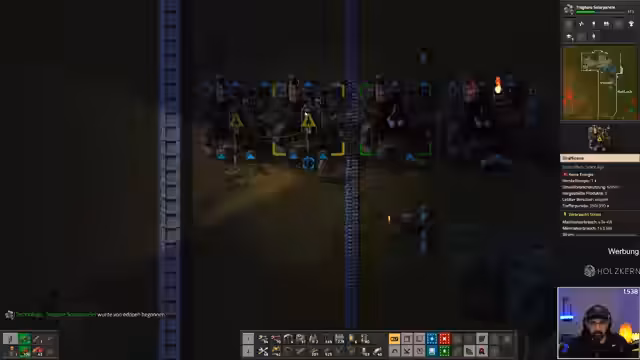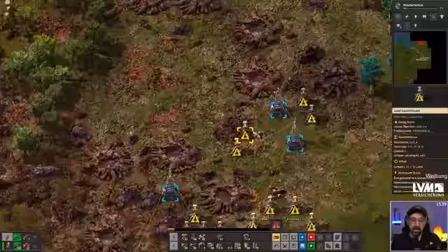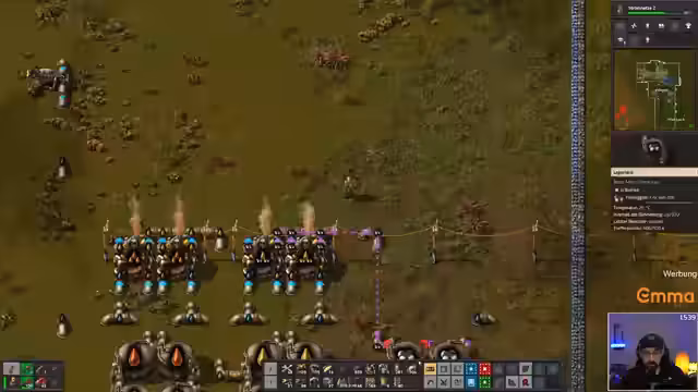 05:07:41Die Spieler konzentrieren sich auf den Ausbau ihrer Basis in Factorio und diskutieren strategische Maßnahmen zur Verteidigung. Sie planen, natürliche Engpässe (Chokes) in der Landschaft zu nutzen, um Mauern zu sparen und die Verteidigung zu optimieren. Es wird überlegt, welche Gebiete noch von Alien-Nestern befreit werden müssen, um ein riesiges Territorium zu sichern. Die Nutzung von Lasertürmen zur vollständigen Umzingelung der Basis wird als primäre Verteidigungsstrategie erörtert. Ein wichtiges Ziel ist es, ein großes Bus-System zu errichten, um die Ressourcen effizient zu verwalten und die Produktion von Waffen und Rüstungen zu beschleunigen. Die Verschiebung des Starts von RimWorld um einige Minuten wird angekündigt, da die aktuelle Phase in Factorio noch abgeschlossen werden muss, um die Basis zu sichern und die weitere Expansion vorzubereiten. Die Spieler sind sich einig, dass eine sofortige Räumung der Nester wichtig ist, um die Basis nicht zu gefährden.