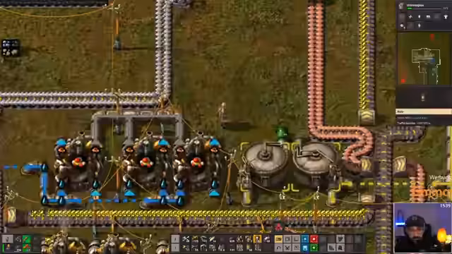 03:39:18Die Spieler diskutieren die Reparatur von Mauern und den Einsatz von Lasertürmen sowohl für die Verteidigung als auch für offensive Zwecke, um das Gebiet zu sichern und eine robustere Verteidigung aufzubauen. Es wird festgestellt, dass genügend Akkumulatoren vorhanden sind, um die Energieversorgung zu gewährleisten. Eine spezielle Technologie, die das Verbauen von Spawns mit Rohren ermöglicht, wird bewusst nicht genutzt, da sie als „Cheatcode“ empfunden wird. Die Spieler sind gespannt, ob sie selbst auf eine vermeintlich einfachere und beabsichtigte Lösung kommen, die der Chat andeutet, aber nicht spoilern soll. Es wird vermutet, dass es sich um etwas Militärisches handeln könnte. Die Priorität liegt auf der Erforschung und dem Bau von Solaranlagen und Lasertürmen, die für die geplante Expansion unerlässlich sind. Die aktuelle Ölproduktion wird durch die Umwandlung von Schweröl in Leichtöl und weiter in Flüssiggas optimiert, um Engpässe zu vermeiden und eine kontinuierliche Versorgung zu gewährleisten. Regelmäßige Wartungsarbeiten an Mauern und Munitionsnachschub sind notwendig, um die Verteidigung aufrechtzuerhalten.