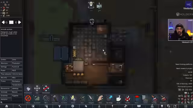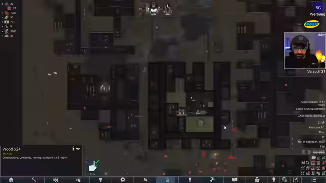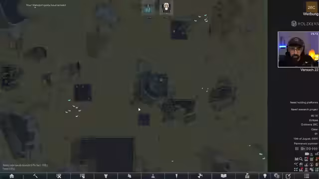 05:22:40Nach dem Abschluss der Factorio-Session, die am Montag fortgesetzt wird, wechseln die Streamer zu RimWorld. Die Freude über den erfolgreichen Factorio-Run ist groß, da die Basis trotz kritischer Momente überlebt hat. Es wird ein neuer RimWorld-Run gestartet, der den Titel „RimWorld VOID! Der letzte Versuch“ trägt. Ziel ist es, das krasseste Raumschiff aller Zeiten zu bauen und zu gewinnen. Der Streamer gibt einen Überblick über den aktuellen Stand der neuen Kolonie, die seit etwa einer Stunde läuft und mit neuen Mods wie „Vanilla Graveship Expanded Chapter One“ ausgestattet ist. Die Kolonisten haben bereits einige Fortschritte gemacht, darunter die Erforschung von Batterien, Solarpaneelen und Biofuel. Die Religion der Kolonie ist nun das Raumschiff selbst, was besondere Vorteile bietet, wie die Akzeptanz von Pastenspendern und kleinen Räumen. Ein Trageroboter wurde ebenfalls erhalten, und die Kolonie bereitet sich auf den Bau des neuen Raumschiffs vor, dessen Absturz noch erwartet wird.