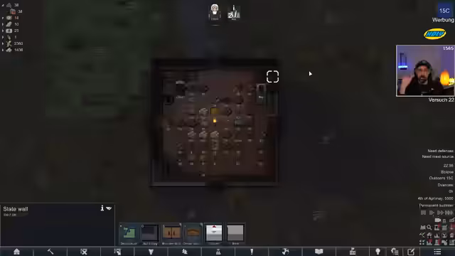08:34:07Der Streamer startet den vierten und finalen Versuch des Rimworld-Hardcore-Deathworld-Runs. Er betont, dass er keine OP-Mods verwenden möchte, da dies den Spielspaß mindern würde. Die Strategie für diesen Run ist es, langsam und bedacht vorzugehen, um nicht zu viele Risiken einzugehen. Er hat das Gefühl, nun die Mechaniken besser verstanden zu haben und ist zuversichtlich, diesen Run erfolgreich zu beenden. Die anfängliche Kolonie liegt auf einer sauberen, offenen Karte mit vielen Steinen, was für den Bau von Vorteil ist. Der Koloniewert ist mit 18.000 sehr niedrig, was die frühen Raids weniger gefährlich macht. Ein Ancient Danger (AD) ist in der Nähe, dessen Öffnung jedoch gut überlegt sein muss, da es sowohl Vorteile als auch Nachteile birgt. Der Streamer plant, frühzeitig mit dem Anbau von Pflanzen zu beginnen und einen Forschungsbereich einzurichten. Er muss sich um die Versorgung mit Wasser und Nahrung kümmern, da die Kolonisten schnell unzufrieden werden könnten. Ein erster Raid durch die Fraktion „Duden“ und die „Cancer Organization“ greift an, was zu Flashbacks an die Schulzeit führt und die humorvolle Seite des Spiels hervorhebt. Er entscheidet sich, einen verletzten Angreifer nicht aufzunehmen, da er einen gesunden Arzt benötigt. Die Priorität liegt nun auf dem Abbau von Stahl und der Forschung, um schnellstmöglich einen Pastenspender zu erhalten und die Nahrungsversorgung zu sichern.
