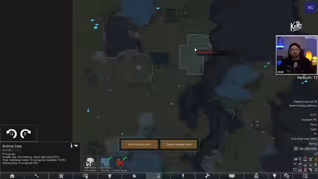 03:47:44Es wird über den Spielfortschritt in RimWorld gesprochen, der durch verschiedene Ereignisse behindert wird. Trotz Forschung an neuen Waffen kann der Streamer diese mangels eines Crafters nicht bauen oder nutzen. Eine lange Ruhepause im Spiel wird bemerkt, bevor ein Mech-Raid eintritt. Da die Basis nicht verteidigt werden kann, muss die Kolonie flüchten und das aufgebaute Animagras zurücklassen. Es wird eine neue, zerklüftete Map erreicht, auf der sich ein Anima-Baum befindet. Der Streamer plant, eine Verteidigung aufzubauen, benötigt aber dringend einen Crafter. Es wird erwähnt, dass die Koloniewert mittlerweile so hoch ist, dass Raids von Max Animals zu erwarten sind. Der Streamer holt sich trotzig einen Kaffee und setzt das Spiel fort. Es wird festgestellt, dass der Durchbruch im Berg noch nicht erfolgt ist und die Felder nicht ausreichend bestellt sind. Zudem wird festgestellt, dass Lou eigentlich für das Überzeugen von Gefangenen zuständig sein sollte. Es wird festgestellt, dass kaum noch Reis vorhanden ist und die Nahrungsmittelversorgung kritisch wird. Der Versuch, Heugras anzupflanzen, scheitert zunächst. Es wird überlegt, einen Kühlschrank zu bauen und auf die Jagd zu gehen, aber der Streamer bevorzugt eine entspanntere Lösung. Ein Händler bietet Silber an, und ein Mechanoiden-Cluster nähert sich, was eine erneute Flucht erforderlich macht. Der Streamer ist frustriert über den mangelnden Fortschritt und die ständigen Rückschläge.