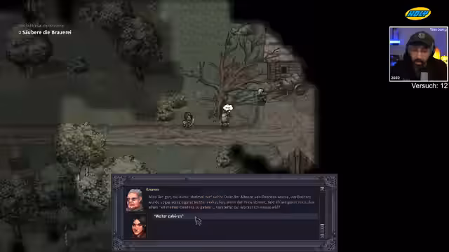 01:10:21Der Streamer schläft, um ausgeruht zur Brauerei aufzubrechen, da er dort beim letzten Mal gestorben ist. Er spricht über zukünftige Neuter-Streams und seine Begeisterung für Stone Shard und RimWorld. Er kämpft gegen Banditen und setzt eine Rauchbombe ein. An der Brauerei angekommen, trifft er auf Söldner, die ihn nicht angreifen, sondern ihm eine alternative Sichtweise auf die Situation schildern. Krom, der Besitzer der Brauerei, erzählt von seinen Problemen mit dem Ältesten von Osbrook, Odar, der ihn erpresst. Odar hat versucht, die Brauerei zu übernehmen, und Krom hat Söldner angeheuert, um sich zu schützen. Krom bittet den Streamer, Odars Bande loszuwerden, und bietet ihm im Gegenzug seinen alten Karren und Pferde an. Der Streamer steht vor der Entscheidung, wem er helfen soll: Odar, dem korrupten Bürgermeister, oder Krom, dem rechtmäßigen Besitzer der Brauerei.
