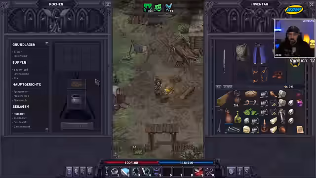 00:16:47Nachdem der letzte Run gescheitert ist, wurde ein neuer Run mit Arna, der Jungfernritterin, gestartet, wobei der Fokus auf Schwert und Schild liegt. Der erste Quest wurde bereits erledigt, inklusive eines Besuchs der Mühle und der Rettung einer Person am Fort am Stadtrand. Nun wurde eine neue Quest angenommen, die zum Rast der Pilger führt, um das Schicksal des Spähtrupps zu erfahren. Arna verfügt über ein gutes Start-Equipment, darunter ein einzigartiges Schwert, einen Würnerbkörriss und einen Azur-Umhang. Der Streamer hat eine Brechstange gekauft, Schinken, Wasser, eine Verzauberungsbruchrolle und Heilzeug. Er möchte mit Schwert und Schild erfolgreich sein und achtet darauf, was für ein Bild er baut und was er wirklich macht. Er betont, dass er Spielmechanikhinweise vermeiden möchte, da diese Spoiler enthalten könnten.