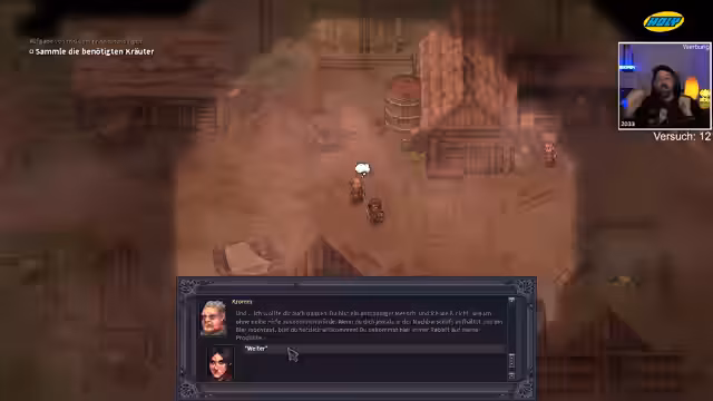 00:42:59Die Quest wird erfolgreich abgegeben, ohne zur Stadt zurückkehren zu müssen, und ein Level-Up steht kurz bevor. Der Streamer erinnert sich an Arnas Skill, der die Aktivierungsrate von Helden und Optimismus erhöht. Im Gasthaus wird nach neuen Informationen gesucht, und es wird ein Auftrag beim betrunkenen Holzfäller angenommen. Der Streamer plant, Identification Scrolls zu kaufen und Sachen in der Stadt zu verkaufen. Er nimmt einen neuen Auftrag an, um die Eichenfassbrauerei zu erreichen, wo er letztes Mal gestorben ist. Er lehnt es ab, zu erfahren, wie die Quest anders gelöst werden könnte. Der Streamer interagiert mit einem Charakter, der ihm von einem vermissten Hobel erzählt, der in einem Karren liegt. Er willigt ein, den Hobel zu holen, um einer direkten Konfrontation mit der Brauerei zu entgehen. Er überlegt, ob er schlafen soll, um für den Kampf fit zu sein.