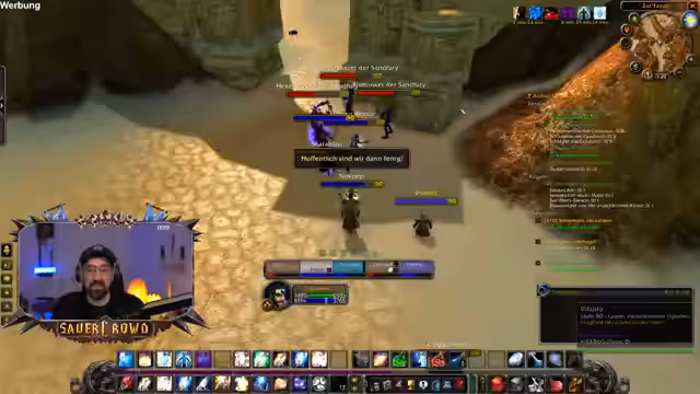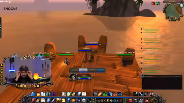 01:07:30Der Streamer beginnt mit einer Gruppe, bestehend aus Niklas, Divi, Vitablo und einem Warlock, einen Dungeonlauf in Zul'Farrak. Vor dem eigentlichen Dungeon gibt es noch eine wichtige Quest-Einsammlung, bei der der Streamer bemerkt, dass er eine spezifische Quest in Tanaris noch nicht abgeschlossen hat. Er fragt die Gruppe, ob sie auf ihn warten soll, da er diese Quest noch schnell erledigen möchte. Die Gruppe signalisiert Verständnis und Geduld, was der Streamer positiv aufnimmt und den entspannten und kooperativen Zusammenhalt der Gruppe lobt.