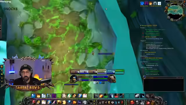 03:14:20Die Gruppe fliegt nach Feralas, um zu grinden und Quests abzuschließen. Die XP-Sammlung steht im Vordergrund, wobei Zweitgruppen gebildet werden, um effizienter voranzukommen. Die Navigation gestaltet sich schwierig, da der Streamer öfter den Überblick verliert und wichtige Questpunkte nicht sofort findet. Dies führt zu humorvollen Missverständnissen, wobei Niklas die Anweisungen des Streamers nicht immer befolgt und stattdessen eigene Wege geht. Die Yeti-Höhle wird als eines der schönsten Gebiete im Spiel gelobt.