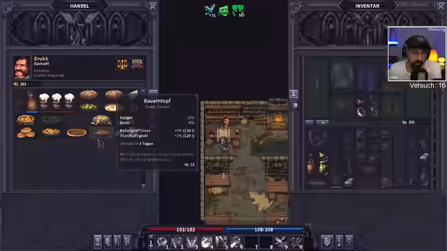 03:21:04Nachdem der Streamer eine Katakomben- und eine Untoten-Quest erfolgreich abschließt, erhält er wertvolle Belohnungen und Erfahrungspunkte. Er nutzt das Level-Up, um seine Dolch-Fähigkeiten weiter auszubauen und erhält dadurch einen kostenlosen Spezialisierungs-Punkt. Gleichzeitig rationalisiert er seine Inventarverwaltung, indem er wertlose Gegenstände verkauft und nur notwendige Ressourcen wie Eisenbarren für seine Quests aufbewahrt, um Platz zu sparen.