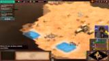 03:34:49Der Gegner spielt eine Build Order und setzt eine Handkanonier-Welle ein, die den Streamer und seine Teammitglieder überrennt. Durch den Mangel an Holz und Ressourcen kann er nicht defensiv bauen oder Einheiten produzieren. Seine Mitspieler werden ebenfalls eliminiert, und das Spiel geht verloren. Der Streamer analysiert, dass der Gegner stark auf Echo-Time gegangen ist und sie im Late Game nicht standhalten konnten.