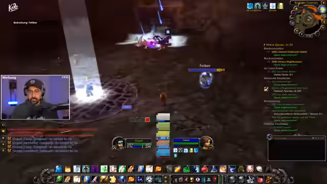 01:30:16Der Streamer schildert eine erhebliche Überforderung durch die Komplexität des Raids, insbesondere die Vielzahl an UIs, Quests und Consumables. Es wird darauf hingewiesen, dass dies Teil des Anfängererlebnisses sei. Für Heiler werden spezifische Mechaniken erklärt, wie die Nutzung von Feuerschutz-Tränken, die Priorisierung der eigenen Gruppe bei Dispel-Effekten und die Wirksamkeit von verschiedenen Heilzaubern wie Erneuerung, das in Molten Core durch die Hots anderer Klassen überschrieben wird. Der Unterschied zwischen Boss- und Mob-debuffs wird ebenfalls thematisiert.
