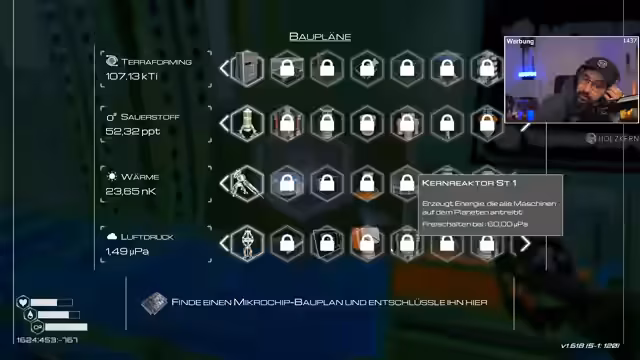 06:48:42Mit den neuen Upgrades startet der Streamer eine Erkundungstour in zuvor zugängliche Bereiche, um mehr Ressourcen, insbesondere Aluminium, zu finden. Er entdeckt riesige Basisstrukturen, die aber erst bei höherem Terraforming-Index betreten werden können. Das Hauptziel bleibt die Befreiung der Planetenoberfläche und der Bau von Reinigungskapseln. Der Streamer beginnt, sein Inventar strategisch aufzuteilen und plant seine nächsten Schritte, um den Planeten nach und nach zu transformieren und zu überleben.