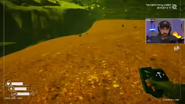 05:22:40Nach dem Wechsel zu Planet Crafter wird das Ziel des Spieles klar definiert: die Terraformierung eines giftigen Planeten in eine bewohnbare Oase. Der Streamer beschreibt den aktuellen Stand des Terraforming-Index und seine Überlebensstrategie. Nach fünf gescheiterten Versuchen, Nahrung anzubauen, scheint der sechste Versuch erfolgreich zu sein, was zu einer Wette über das Gelingen des 'Runs' führt. Der Fokus liegt darauf, einen Planeten mit blauem Himmel, Sauerstoff und Vegetation zu erschaffen, wobei die anfängliche Umgebung als 'giftige Wüste' beschrieben wird.