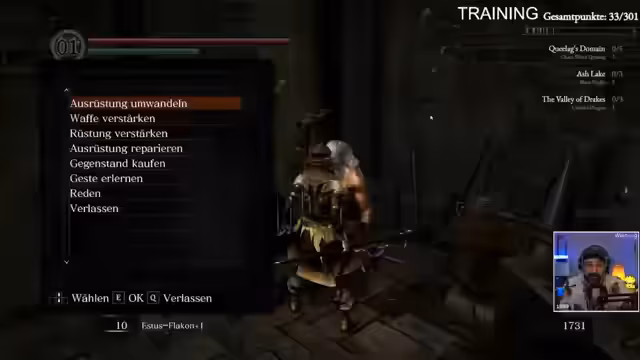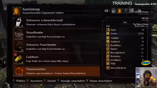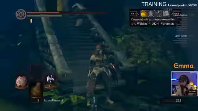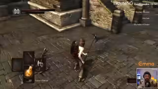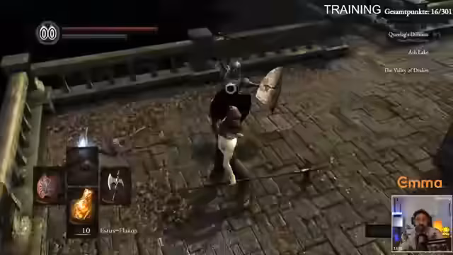 04:55:05Der Stream konzentriert sich auf ein Training in Dark Souls 1, das primär darauf abzielt, die Überlebenschancen des Spielers zu maximieren. Der Fokus liegt auf der Verteilung der Statistikpunkter, insbesondere Vitalität, um den Schaden erhöhen zu können. Die Nutzung von 'Humanity' wird als entscheidend angesehen, um die Anzahl der verfügbaren Estus-Flaschen auf 10 zu erhöhen. Der Streamer ist sich seiner mangelnden Erfahrung bewusst und betont, dass er ohne die Hilfe des Chats komplett verloren wäre.