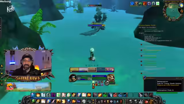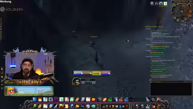 08:56:54Die Gruppe stößt auf einen sehr starken Elite-Boss in einer 52er Quest. Der Boss führt einen Aggro-Reset aus und verursacht enormen Schaden, wodurch alle Gruppenmitglieder schnell auf unter 50% Lebenspunkte fallen. Der Streamer, als Tank, muss den Boss tanken, während er als Healer kaum ausreicht, da er Mana- und Aggro-Probleme hat. Der Versuch, die ultimative Fähigkeit 'Elune' zu nutzen, scheitert im letzten Moment, da der Streamer unmittelbar nach dem Aktivieren durch einen finalen Schlag des Bosses getötet wird. Die Gruppe analysiert den Fehlschlag und kommt zu dem Schluss, dass der Boss zu stark war und sie sich nicht ernst genug genommen hatten.