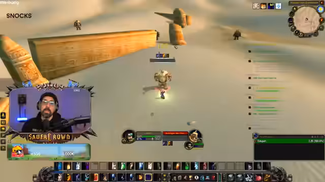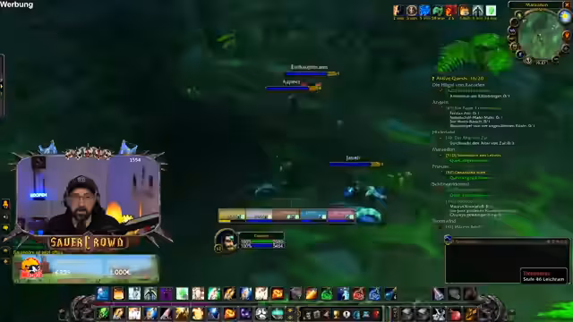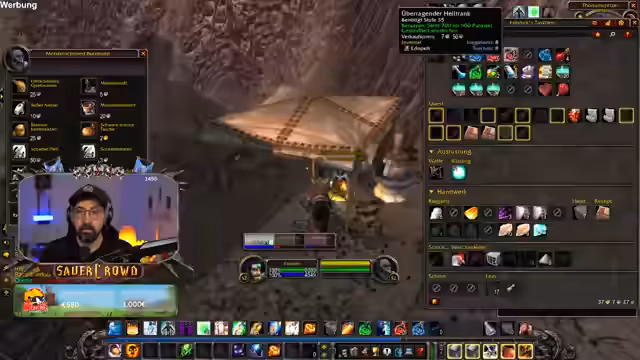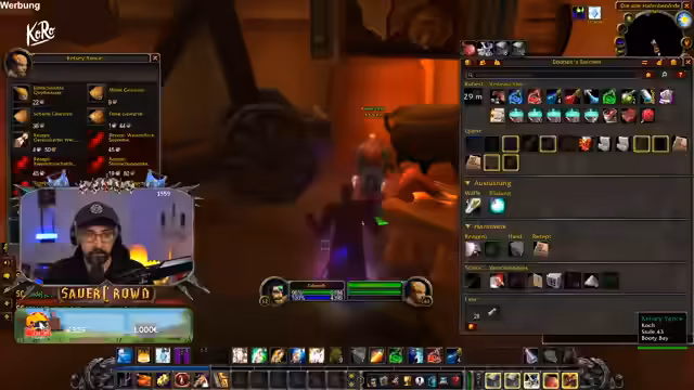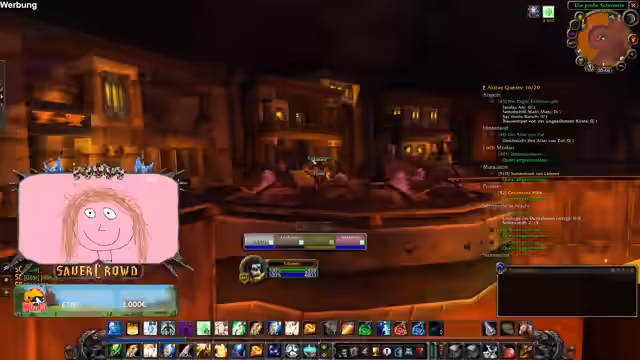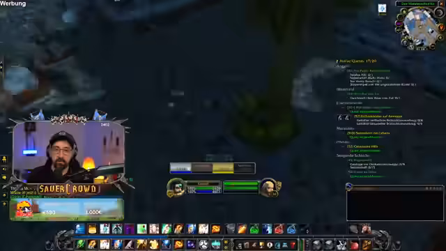 06:40:22Einige Spieler der Gruppe sind bei einem LAN-Event, was für Unterhaltung sorgt. Der Streamer erwähnt ein Sponsoring mit BASF, das im Rahmen von World of Warcraft für das Thema Mental Health wirbt. Dies führt zu einer kurzen, humorvollen Unterhaltung über die realen Auswirkungen von Gaming auf die psychische Gesundheit. Frust über die Gildenbank und technische Probleme mit einem Add-on werden thematisiert.