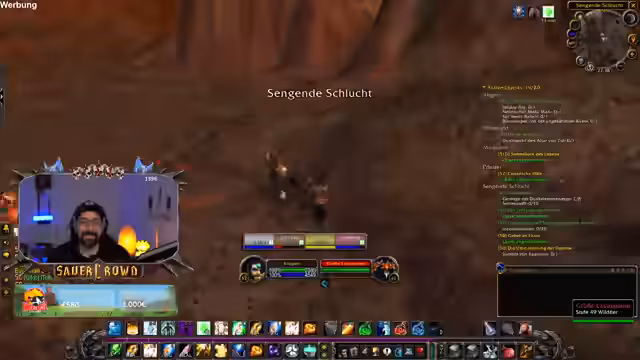 03:33:48Nachdem der Streamer ein Casino-Event erwähnt hat, in dem auf Renngnome gewettet wird, begibt er sich in das neue Gebiet 'Sengende Schlucht'. Dort stellt er fest, dass er für diesen Dungeon Level 60 solo war, und macht sich über diejenigen lustig, die als Schurken sterben. Er fokussiert sich darauf, die fehlenden 120.000 Erfahrungspunkte für das Level-up zu farmen und wird von einem Gegner überrascht, was ihn zu einem kurzen 'Rip' kommentieren lässt.