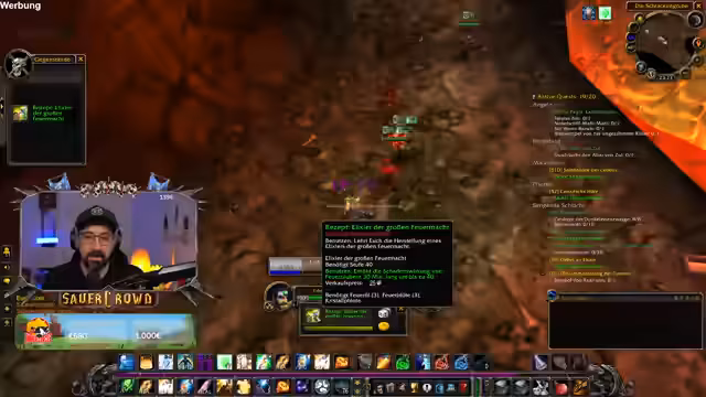 05:24:56Aufgrund der Gefahr, alleine in die Höhlensysteme unter der Erde im Kessel zu steigen, wird die Zusammenarbeit mit anderen Spielern in Betracht gezogen. Ein geplanter Kampf gegen den Boss Ragnaros wird diskutiert, bei dem der Streamer als Heiler fungieren und die Agro halten soll. Die Gefahr von One-Shots durch Lava oder Stürze wird mehrfach betont und als extrem spooky beschrieben.