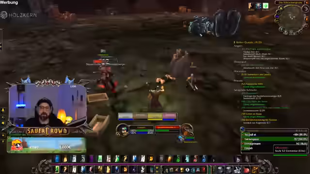 09:08:59Der Streamer und seine Gruppe erleben einen überraschend schwierigen Kampf bei einer Quest gegen einen starken Caster-Mob mit Golem. Nachdem der Mob mit einem ungewöhnlich hohen Schaden einen Spieler halbiert, erkennen sie, dass die Quest-Mobs deutlich stärker als erwartet sind und vermutlich ein Bug dafür verantwortlich ist, dass zwei Caster anstatt eines spawnen. Dies führt zu einem schnellen Gruppenwiped, bei dem die Elune-Abhilfe im letzten Moment fehlschlägt. Der Streamer ist frustriert und vermutet einen bekannten Bug.