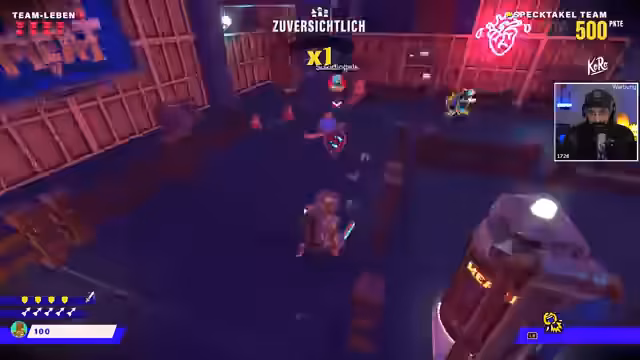 03:54:53Der Streamer wirft eine Kiste in eine Schlucht und beginnt, Achievements zu sammeln. Er beschreibt einen Raum als den coolsten von allen und begeistert sich über die Siegerrunde und das Erscheinungsbild der Umgebung. Es gibt eine Diskussion über Punktesysteme durch Bombenangriffe. Der Plan für die nächsten Aktionen umfasst das Besuchen eines Item-Shops, das Überprüfen der Bestenliste und das Freischalten neuer Fähigkeiten. Die Waffenwahl wird thematisiert, bei der der Streamer zwischen Schwert und Hammer wechseln kann und sich für einen legendären Hammer entscheidet.