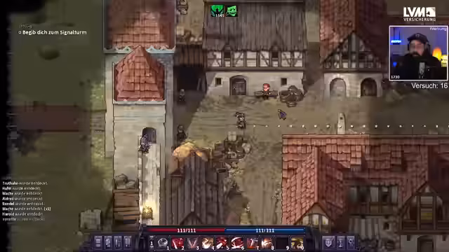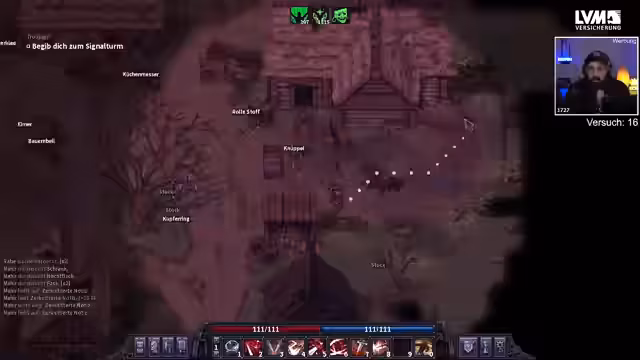 00:53:42Ein Run endet abrupt, nachdem der Streamer in einen Kampf ohne Buffs zieht und von einem sehr gefährlichen Gegner besiegt wird. Trotzdem werden Loot wie Troll-Fell und wertvolle Edelsteine gesammelt. Eine Entdeckung in einer Höhne beschert einen seltenen Saphir und bei einem Leprosorium wird eine legendäre Pest-Arzt-Maske mit Gift-Resistance gefunden, die für zukünftige Dungeons nützlich sein könnte.