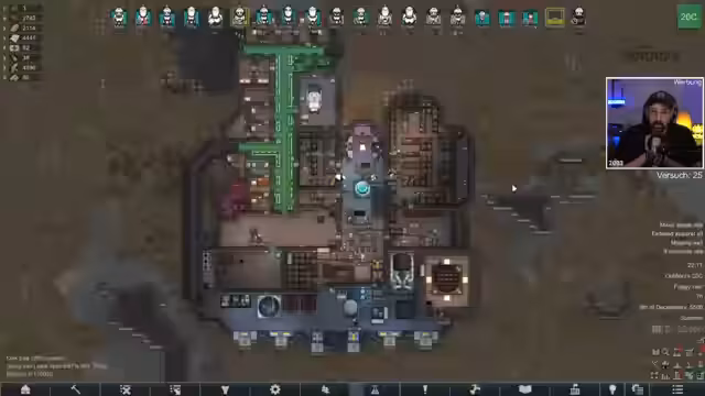 03:50:05Die Stream beginnt mit Plänen für einen kolonialen Umbau. Der Streamer erkundigt sich nach den Voraussetzungen für den Transhumanismus-Modus, stellt jedoch schnell fest, dass dies bei 20 Kolonisten nicht praktikabel ist, da jeder ein eigenes, teures Gerät benötigt, was den Platz extrem beanspruchen würde. Stattdessen konzentriert sich der Streamer auf sofort umsetzbare Projekte wie die Errichtung einer richtigen Küche und die Einrichtung eines Aufenthaltsraums, um die Moral der Kolonisten zu verbessern. Dabei fallen wichtige Entscheidungen über die Raumaufteilung, um Durchgangsbereiche von Kochbereichen zu trennen und einen komfortablen Wohnbereich zu schaffen.