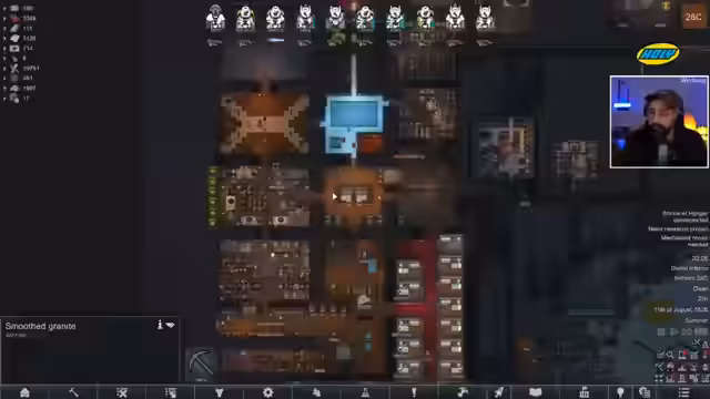 00:10:16Der Stream beginnt mit der Begrüßung des Chats. Der Streamer gibt bekannt, dass kein Dark Souls Training stattfindet, da dieses für den nächsten Tag geplant ist. Der Fokus liegt auf dem Rimworld-Spiel, nachdem das Spiel zuvor aufgrund von Performance-Problemen kaum spielbar war. Ein wichtiger Punkt ist, dass der Streamer Natascha erwartet, um später ein gemeinsames Projekt, das sogenannte Placement, zu besprechen und den Waschbären Berenice, der ihm gestohlen wurde, im Stream zu zeigen. Das Spiel ist nach der Installation von Performance-Mods wieder flüssig lauffähig, was den Streamer sehr freut.