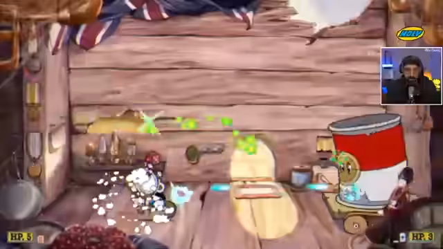 00:39:28Es wird festgestellt, dass die Fähigkeiten der Spieler vertauscht sind, was zu Verwirrung führt. Trotzdem wird beschlossen, weiterzuspielen und sich an die neue Situation anzupassen. Die Soundeinstellungen werden angepasst, um ein optimales Spielerlebnis zu gewährleisten. Der Bosskampf gegen die Wespe beginnt, und es wird schnell klar, dass das Level sehr unruhig und schwer ist. Die Spieler haben Schwierigkeiten, den Angriffen auszuweichen und den Überblick zu behalten. Trotzdem gelingt es ihnen, den Boss zu besiegen, allerdings mit einigen Schwierigkeiten. Nach dem Sieg wird festgestellt, dass die Spieler plötzlich sechs Leben haben, was für Verwirrung sorgt, da normalerweise nur drei Leben zur Verfügung stehen. Die Spieler vermuten, dass dies mit dem Schwierigkeitsgrad oder einer Belohnung für einen früheren Erfolg zusammenhängen könnte. Sie beschließen, dies später zu überprüfen und zunächst weiterzuspielen. Es folgt der nächste Bosskampf, bei dem es darum geht, Kaugummis auszuweichen und eine Kanone zu bedienen. Die Spieler haben Schwierigkeiten, den Überblick zu behalten und den Angriffen auszuweichen. Trotzdem gelingt es ihnen, weit zu kommen, aber schließlich scheitern sie.
