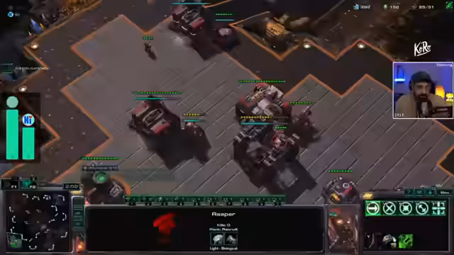 03:04:08Nach Abschluss des Shooter-Turniers wechseln die Streamer zu einem Spiel von StarCraft II. Einer der Spieler ist zuversichtlich, den Gesamtsieg für sich zu entscheiden, da er den Gegner in den vorherigen Runden dominiert hat. Die Partie beginnt mit taktischen Manövern. Der Gegner wird für einen typischen „Proxy Barracks“ Rush verdächtigt, was den anderen Spieler zu einer defensiven Spielweise ohne Expansion verleitet. Die Kommunikation über die Spielziele ist unklar, was zu Missverständnissen und strategisch suboptimalen Entscheidungen führt.