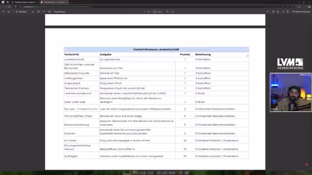 03:39:29Die Streamer öffnen die detaillierte Aufgabenliste für das DLDS-Turnier. Diskutieren über die Punkteverteilung und priorisieren die Aufgaben. Sie stellen fest, dass einige Punkte, wie die Honiggewinnung ohne Bienen zu verärgern, technisch komplex sind und möglicherweise übersprungen werden sollen. Stattdessen konzentrieren sie sich auf einfache Punkte, wie das Zähmen von Tieren oder das Anpflanzen von Kulturen, die parallel zum Handeln des Partners erledigt werden können. Sie planen, sich auf den Enderdrachen zu konzentrieren, da dieser die meisten Punkte bringt.
