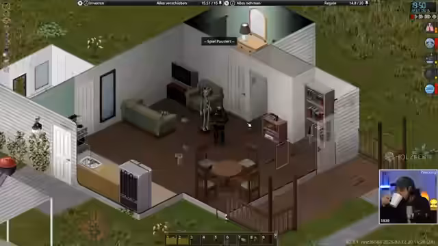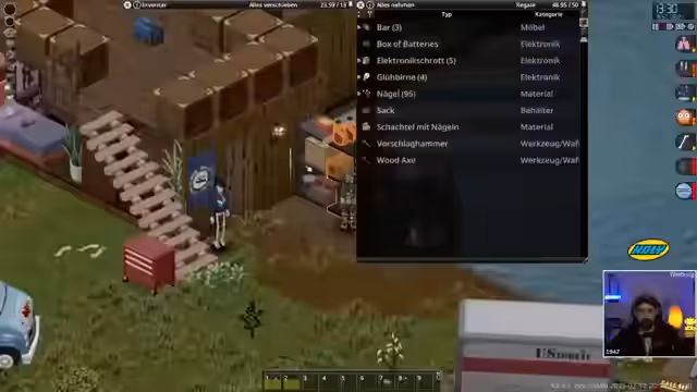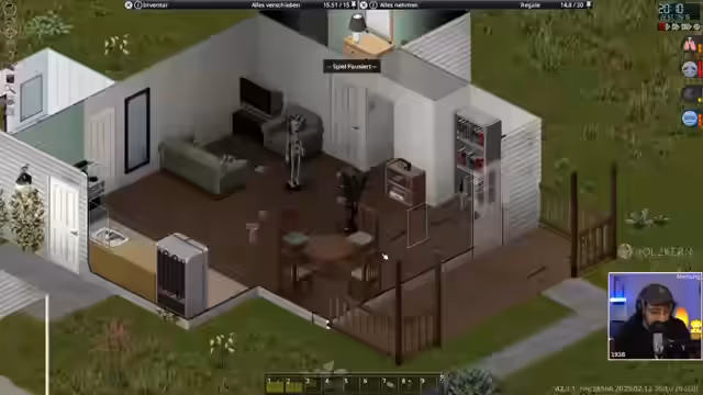 07:33:29Nach dem langen politischen Exkurs zwingt sich der Streamer, das Thema fallen zu lassen und sich wieder voll auf das Spiel Project Zomboid zu konzentrieren. Er betont, dass es Freitagabend ist und der Fokus auf der Apokalypse liegen soll. Nachdem er den Rucksack aufgeräumt hat, nimmt er viel Munition, eine Brechstange und Medizinausstattung mit. Sein aktuelles Ziel ist klar definiert: die baldige Plünderung der fünf Survivor-Häuser, wobei er sich einen sicheren Schussplatz suchen muss, um die anlockenden Zombies kontrolliert bekämpfen zu können.