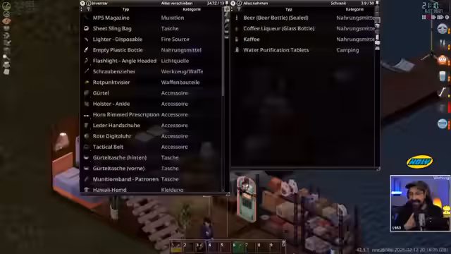 03:29:16Nachdem das Sortieren der Beute aus den Fahrzeugen als notwendiges Übel angesehen wurde, beginnt nun die strukturierte Einlagerung aller gesammelten Gegenstände in der Basis. Das Inventar wird nach Kategorien sortiert: Munition und Waffen erhalten eigene Kisten, genau wie Elektro-Döns, Lotterietickets und Brechstangen. Ziel ist es, einen vollständigen Überblick über alle Ressourcen zu gewinnen, um zukünftige Aktionen wie das Bauen, Craften und das Verwalten von Vorräten effizienter gestalten zu können.