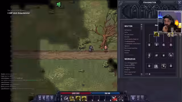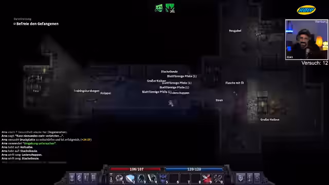 01:24:31Es wird ein Level-Up erreicht und der Skillpunkt in Stärke investiert, was sich positiv auf Nahkampffähigkeiten, Blocken, Schaden und Wurfreichweite auswirkt. Ein weiterer Skillpunkt in Stärke, Wahrnehmung oder Vitalität würde neue Schwert-Skills freischalten, darunter die Fechthaltung, die Konter- und Blockchance erhöht. Es gibt Überlegungen, ob man auf Bleed-Effekte setzen soll. Die Standhaftigkeit als Schildfähigkeit wird als nützlich erachtet, da sie die Skillnutzungshäufigkeit erhöht. Es wird überlegt, als nächstes Durchbruch zu skillen. Das Leveln gestaltet sich aufgrund schwacher Gegner einfach, aber die benötigten AP steigen. Es stellt sich die Frage nach lohnenswerter Beute, während die Möglichkeit besteht, Gegner mit Öl zu bedecken und anzuzünden. Ein Dungeon wird abgeschlossen, wobei die Gegner als dumm bezeichnet werden, da sie in Fallen laufen. Die erhaltene Beute wird als wenig wertvoll eingeschätzt, und der Platzmangel im Inventar wird thematisiert. Kohl wird als nützlich erachtet, um die Haltbarkeit von Lederrüstungen wiederherzustellen, obwohl keine vorhanden sind. Der Waffenwechsel mit 'W' wird mit Diablo 2 verglichen, wo er hauptsächlich zum Buffen mit CTA genutzt wurde.
