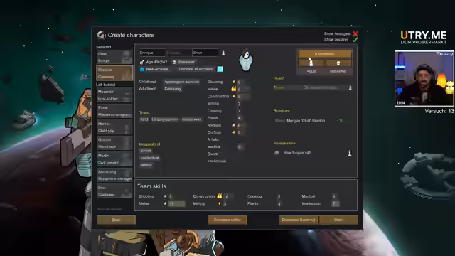 05:29:05Es erfolgt eine Anpassung der anfänglichen Strategie, da diese nicht mehr vollständig greift. Der Fokus verschiebt sich auf die Nutzung aller verfügbaren Ressourcen im Raumschiff, einschließlich des Anbaus von Reisfeldern in Kübeln. Ursprünglich war geplant, ein Gebiet mit Gebäuden für Treibstoff zu erkunden, doch nun wird eine 'Launch Site' mit 40 bis 60 Einheiten in Betracht gezogen. Alternativ werden 'Mountain Caves' und eine 'Ancient Launch Site' mit 'White Strawberry Plants' als mögliche Ziele evaluiert. Nach mehreren erfolglosen Versuchen, ein geeignetes Ziel zu finden, wird humorvoll angedroht, das Spiel zurückzugeben und eine negative Bewertung zu schreiben, falls kein Erfolg erzielt wird. Die Suche konzentriert sich auf Ruinen und Raffinerien, um Ressourcen zu sichern. Der Charaktereditor wird geladen, um Anpassungen vorzunehmen, wobei der Chat als 'Vampir' bezeichnet wird, der kein Social besitzt. Es wird ein Team zusammengestellt, wobei die Fähigkeiten der Charaktere Matteo und Rimbert hervorgehoben werden. Der Chat wird als 'wild' beschrieben, während der Streamer überlegt, wie er ein T-Shirt verschenken kann. Die Notwendigkeit von Mining- und Crafting-Fähigkeiten wird betont, wobei verschiedene Charaktereigenschaften und deren Eignung für die Mission diskutiert werden. Die Traits der Charaktere werden als fein und wichtig erachtet, wobei neurotische Eigenschaften und 'Careful Shooter'-Fähigkeiten in Betracht gezogen werden.