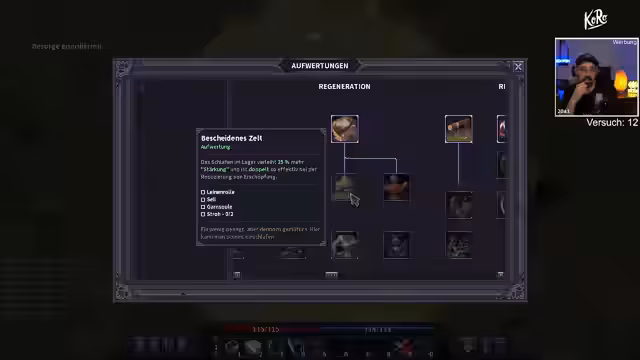 04:10:17Es wird überlegt, ob ein magischer Streitkolben wirklich besser ist und die Schwankchance gegen ungerüstete Gegner als Vorteil gesehen. Der Streamer überlegt, ob ein neues Schild gekauft werden soll, und stellt fest, dass es teuer ist, aber bessere Blockchancen bietet. Es wird erwähnt, dass im Rimbird einige wilde Dinge passiert sind. Der Streamer verzaubert das Schild mit Schnittresistenz und erwähnt, dass er noch viele Spiele auf seiner Liste hat, die er spielen möchte. Der Streamer genießt das Early Game und stirbt absichtlich, um den Content zu strecken. Der aktuelle Build wird als richtig nice empfunden. Es wird angekündigt, dass direkt zu Rimbled gewechselt wird. Es wird festgestellt, dass es zu viele Spiele gibt, auf die der Streamer Bock hat. Im Spiel wird ein Zustand der Ermattung festgestellt und der Charakter rastet. Es wird ein Auftrag angenommen, bei dem es darum geht, ein Gebiet von Räubern zu befreien. Der Streamer schließt einen Deal mit einem Charakter, um die Brauerei zu retten und die Banditen zu töten. Es wird ein guter Start festgestellt, mit einem blauen Pflege und einem Dreiecksschild, das mit Schnittresistenz verzaubert ist. Der Streamer plant, in Leben und Geomantie zu investieren und Erdbändiger zu werden. Es wird auf Streitkolben, Einhand und Schild gesetzt, um super tanky zu sein und Crowd Control zu ermöglichen.