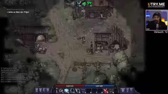 00:48:15Es wird ein Auftrag von einem Ältesten angenommen, obwohl dieser eigentlich schon abgelaufen ist. Der Streamer lässt sich aber auf eine Verdopplung der Belohnung für einen neuen Auftrag ein. Da die neuen Aufträge zu gefährlich erscheinen, wird beschlossen, diese nicht anzunehmen und stattdessen weiter in Richtung Norden zu reisen. In einer Schenke werden Kartoffeln mit Pilzen und Knoblauch-Käsebrot gekauft. Da niemand anwesend ist, um zu bezahlen, wird die Schenke verlassen. Es wird beschlossen, ein paar Gegner zu suchen, um Erfahrungspunkte zu sammeln. Dabei stellt sich heraus, dass das neue Schild extrem effektiv ist und die Gegner problemlos abgewehrt werden können. Nach dem Kampf wird die Stadt wieder aufgesucht, um neue Aufträge zu finden. Es wird ein Auftrag zur Geiselrettung angenommen und beschlossen, im Gasthaus zu übernachten, um ausgeruht in den Kampf zu ziehen.