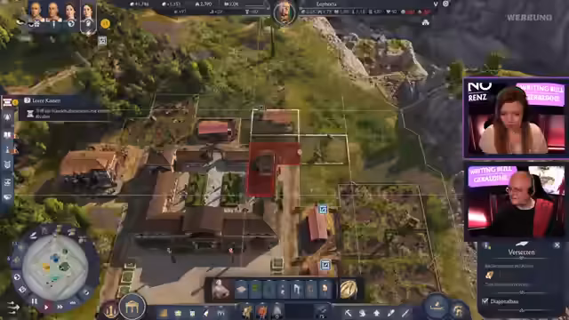 01:20:29Das Geheimziel von Girardin und Writing Bull sorgt für besondere Aufmerksamkeit: Sie müssen Schweineställe direkt neben Villen bauen, was ihren ästhetischen Prinzipien widerspricht und als große Herausforderung für Schönbauer gilt. Radler und Lena hingegen sind mit dem Verbot konfrontiert, Feuerwachen zu bauen, was in Anno 117, wo Brände häufig auftreten, zu erheblichen Problemen führen kann. Dies führt zu Flächenschäden und Arbeitskraftverlusten. Die Kommentatoren erläutern, dass bestimmte Gebäude wie Bäckereien im Stadtzentrum zwar die Zufriedenheit und das Einkommen der Bürger steigern, aber auch das Katastrophenrisiko erhöhen. Es wird auch über die unterschiedlichen Ressourcenbeschaffungsmöglichkeiten in Albion gesprochen, wo Ziegel aus dem Sumpf gewonnen werden können, im Gegensatz zu Flussplätzen in anderen Regionen. Die keltische Prägung der Bürger ermöglicht die Bewirtschaftung von Sumpfländern für Aal- und Anbau, während die Romanisierung zur Aufforstung führt. Die Spieler müssen ihre Strategien an diese spezifischen Gegebenheiten anpassen und gleichzeitig ihre Geheimziele im Auge behalten, auch wenn dies bedeutet, von gewohnten Bauweisen abzuweichen oder Risiken einzugehen.